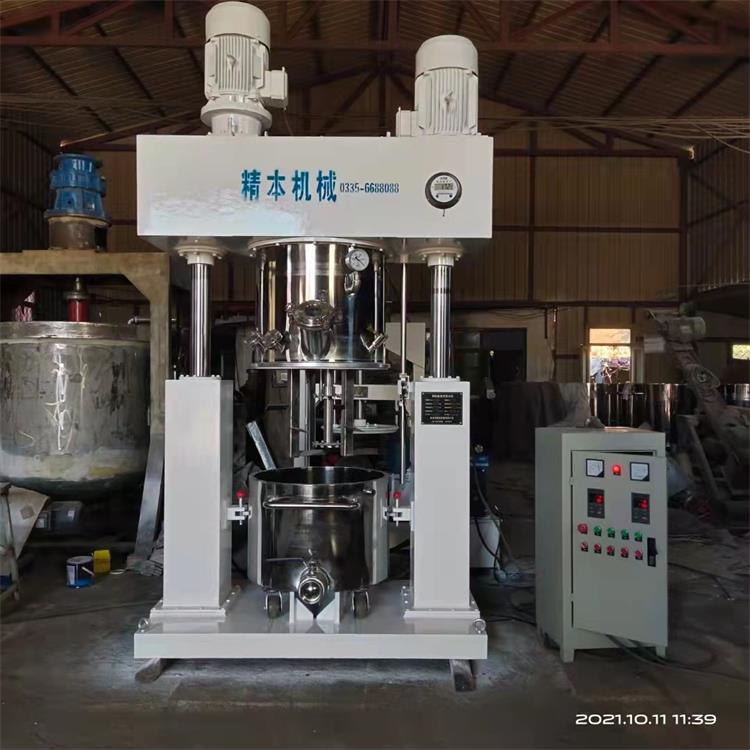 雙行星攪拌機(jī)根據(jù)行星運動軌跡設(shè)計,攪拌結(jié)構(gòu)有低速攪拌器、高速攪拌器、以及相應(yīng)的刮板裝置組合而成。雙行星攪拌機(jī)的雙組低速攪拌器自轉(zhuǎn)的同時繞著軸心進(jìn)行公轉(zhuǎn),而且低速攪拌器的形式根據(jù)不同的物料粘度和生產(chǎn)工藝選擇不同的攪拌形式,常見的攪拌形式包括槳葉式、麻花式、爪式、框式等結(jié)構(gòu),具備良好的混合、反應(yīng)、捏合、溶解的作用;高速分散器由多層具備極高線速度的鋸齒狀分散盤組成,它同樣在高速自轉(zhuǎn)的同時繞著軸心進(jìn)行公轉(zhuǎn),能夠?qū)⒎哿希ㄖ鷦┛焖俚姆稚⒌綕{料里,具備很強(qiáng)的分散作用;刮板裝置根據(jù)客戶實際的生產(chǎn)工況選配。