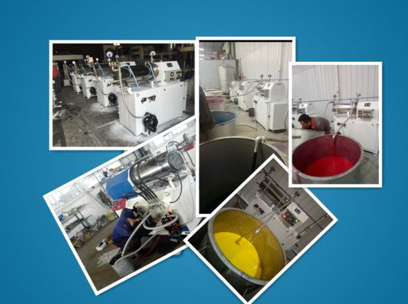 臥式密閉砂磨機是一種采用濕法研磨分散、筒體水平安裝、連續(xù)密閉生產的化工設備;型氣動雙隔膜泵(或齒輪泵)將經過預分散、潤濕處理的固液相混合物料輸入筒體內,物料和筒體內的研磨介質一起被高速旋轉的分散器組所攪動,使物料中的固體顆粒和研磨介質間產生強烈的碰撞、剪切,在短時間內達到物料顆粒的磨細和分散聚集體的目的。研磨分散物料效果是生產油漆、油墨、染料等產品的設備